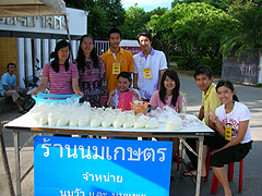 牛乳は上の写真のチェンマイ大学農学部の皆さんが、飼っている牛と山羊のお乳を毎夕搾って、熱処理した後売って